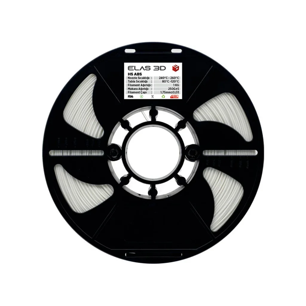 Elas 3D Beyaz Hs ABS, yüksek sıcaklık dayanımı ve dayanıklılığıyla bilinen bir 3D baskı filamentidir. Genellikle mühendislik uygulamalarında kullanılır.