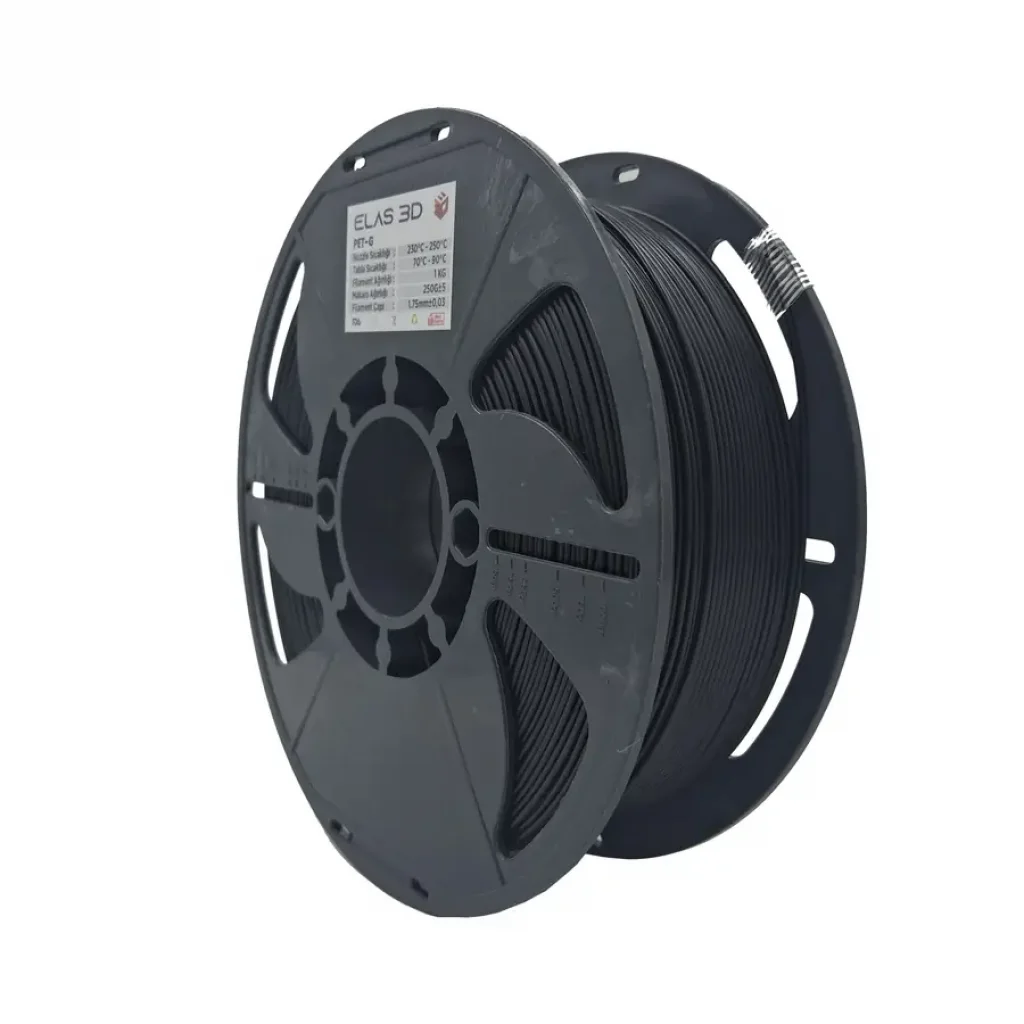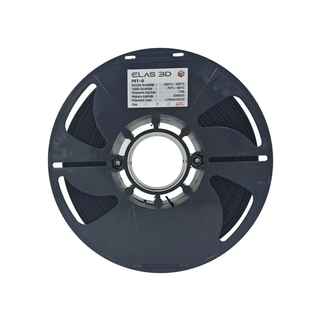 PET-G (Polietilen Tereftalat Glikol),PLA ve ABS filamentlerin güçlü yönlerini birleştiren, orta seviyede esnekliğe ve yüksek darbe dayanımına sahip bir termoplastiktir. Isıya ve neme karşı dirençli olan bu malzeme, hem iç hem de dış mekan uygulamalarına uygundur. Siyah renkteki versiyonu, özellikle toz, kir ve çizik gibi izleri daha az gösterdiği için yoğun kullanım gerektiren parçalarda tercih edilir.