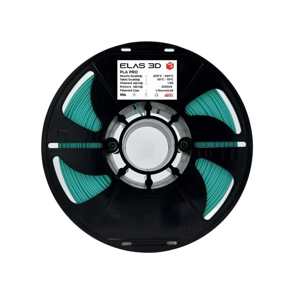 • ELAS 3D Su Yeşili PLA Pro Filament, güçlü ve dayanıklı yapısıyla ihtiyacınız olan kaliteli baskılar için ideal bir seçenektir.